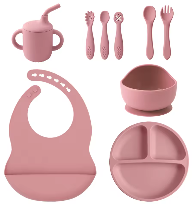 Make mealtime simple and mess-free with our 9-piece Silicone Baby Feeding Set. Made from BPA-free, food-grade silicone, it’s safe for little mouths, gentle on gums, and built to last. Each piece features strong suction bases to keep food in place, while the adjustable bib and spill-resistant cup help cut down on cleanup. Lightweight and easy for small hands to hold, this set encourages self-feeding and independence. Dishwasher and microwave safe, it’s the perfect all-in-one solution for stress-free mealtimes at home or on the go.